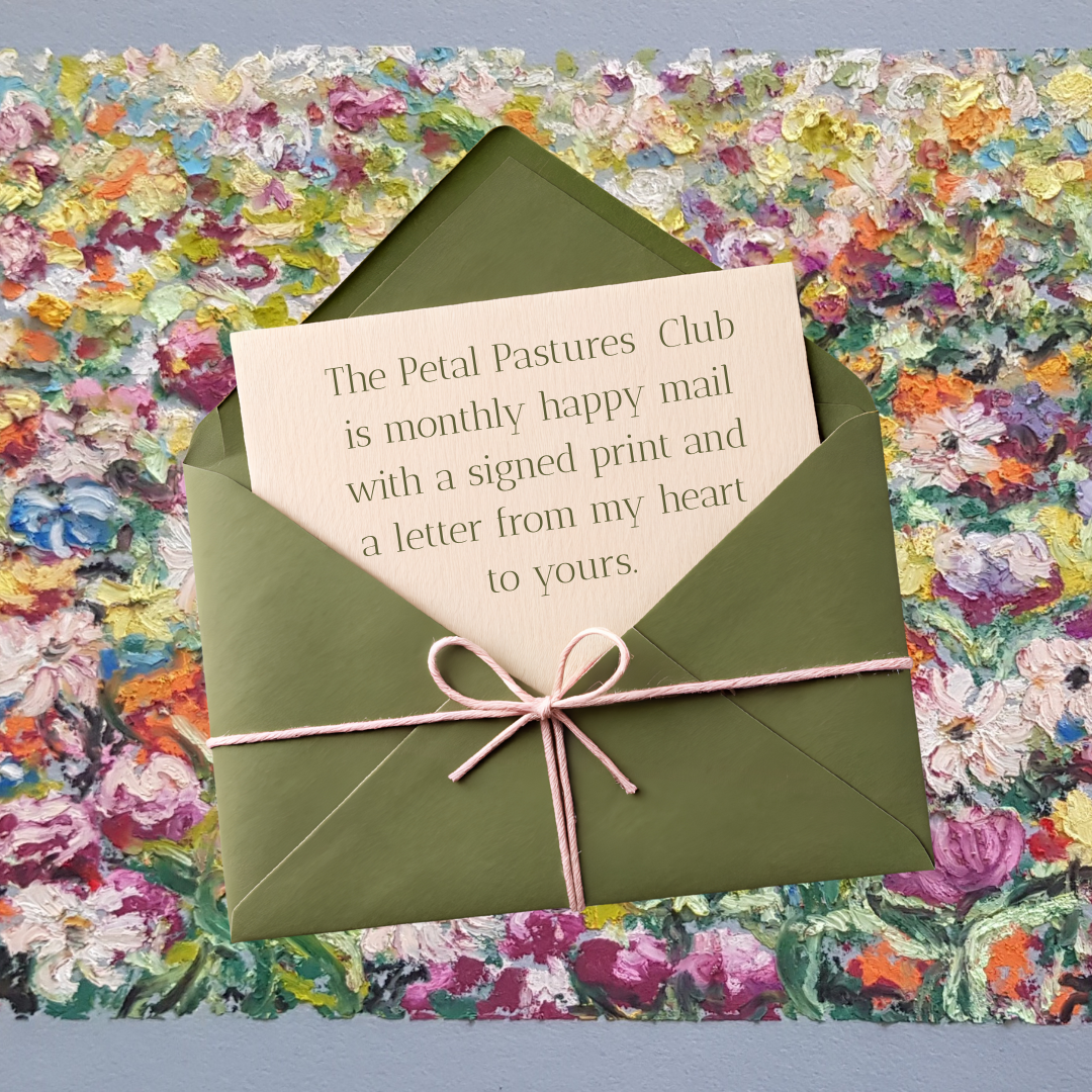 I hope you’ll join the Club. I would truly love to send you a little happy mail each month, filled with petals and pastures.XXX